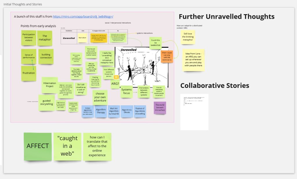 I’ve been doing a lot of the work for Unravelled in Miro, so here’s an embed to one part of the miro board if you want to check it out.