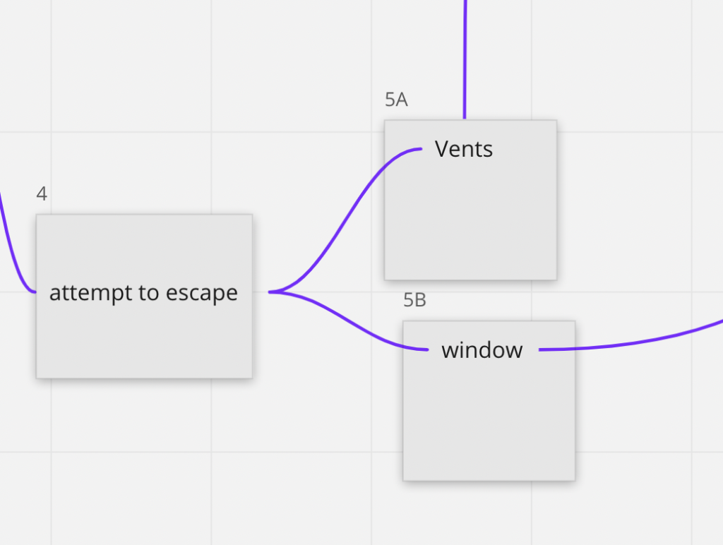 - Title for 5A: Escaping through the vent http://interactivestorytellingsummer2022.ucalgaryblogs.ca/2022/07/07/escaping-through-the-vent/