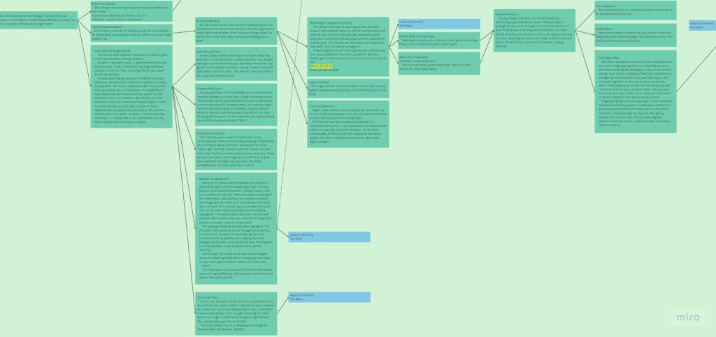 This is so exhausting! One frame is just the path for the first room. Thankfully the first floor has the most exploration and it gets easier as you go/collect supplies but dang I kinda hate myself. The Miro coming in clutch though so I don’t get confused with what path to add to what.