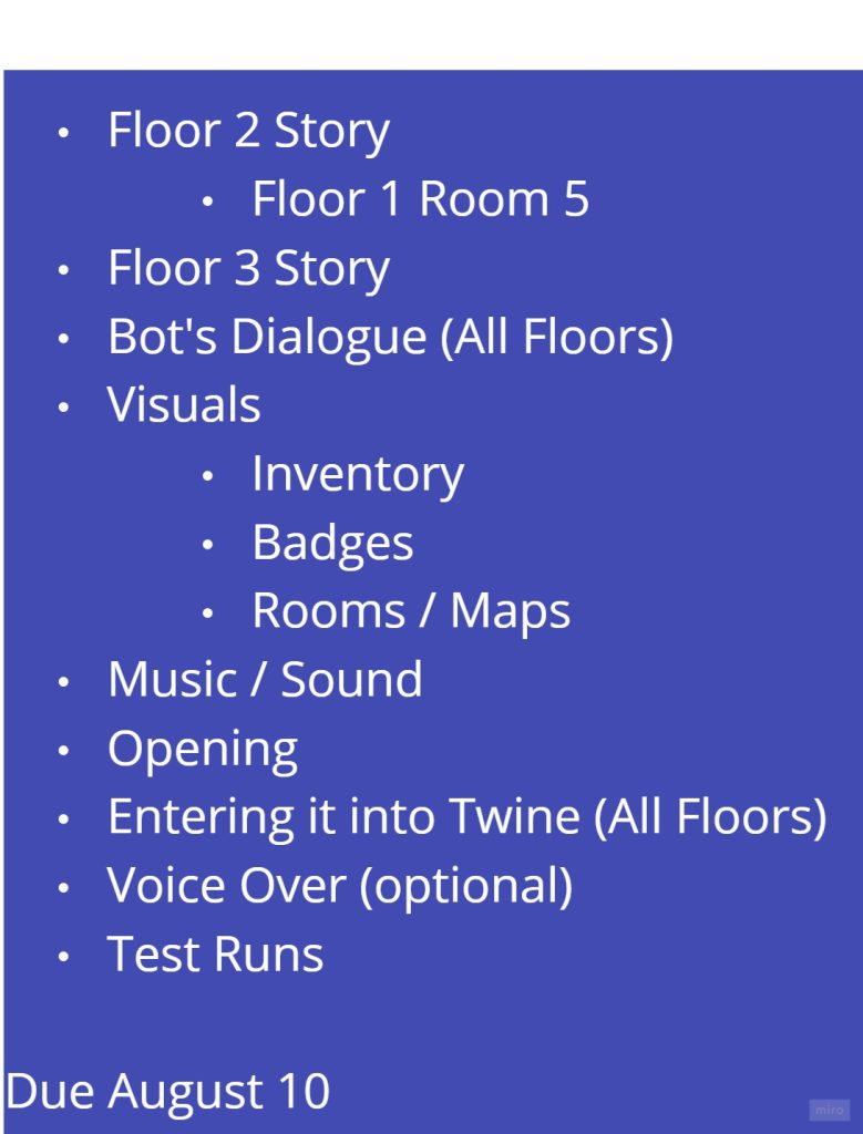 I think for a bit longer I’m going to start adding what I wrote into Twine. During the day I am busy/babysitting/work so I tend to work on these when I get home from my shift at 10:30pm and work on this until 2:00am.