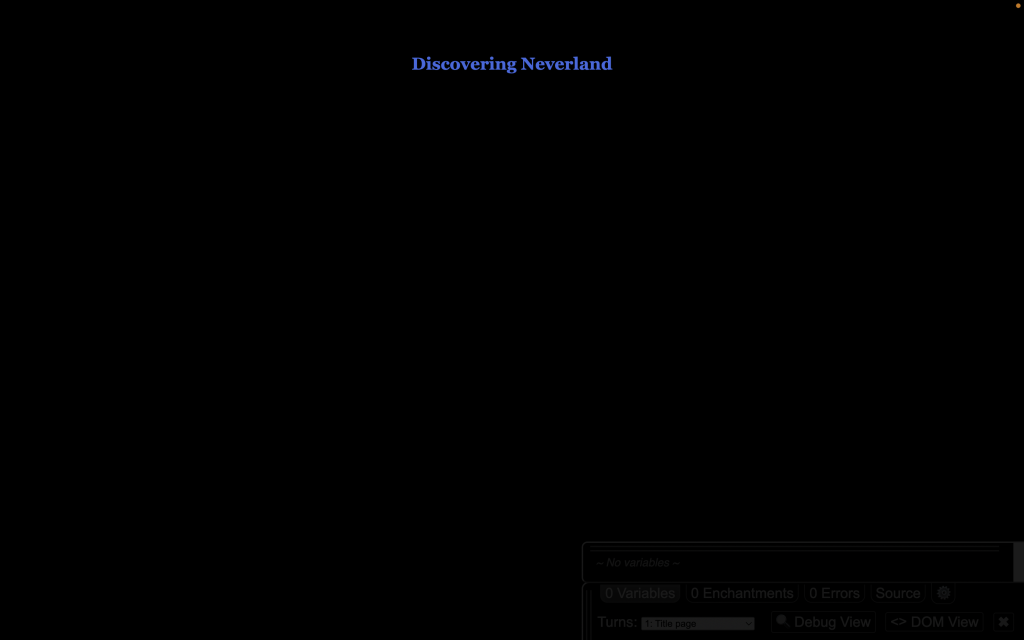 This is my title page as of right now. I’ll probably change it. I may just opt for drawing it, since I’m kind of struggling with basic level coding, like centering text. I think it would take me way too long to code a title.