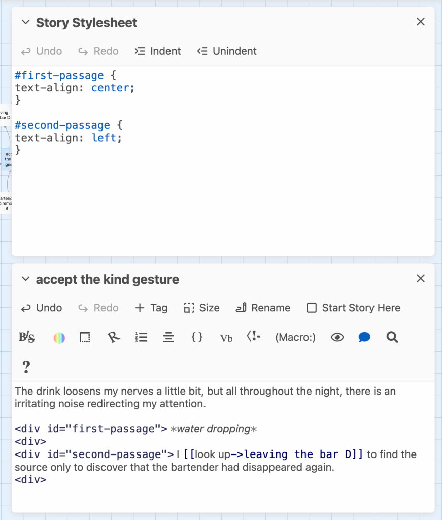 I was having trouble figuring out how to align text on Twine. After looking at another Sketchblog, I found a classmate having a similar issue.