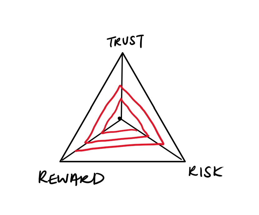 This led Owen to introduce the concept of the Trust Triangle which can be applied to any relationship we engage with, and in my case is between me and the reader: