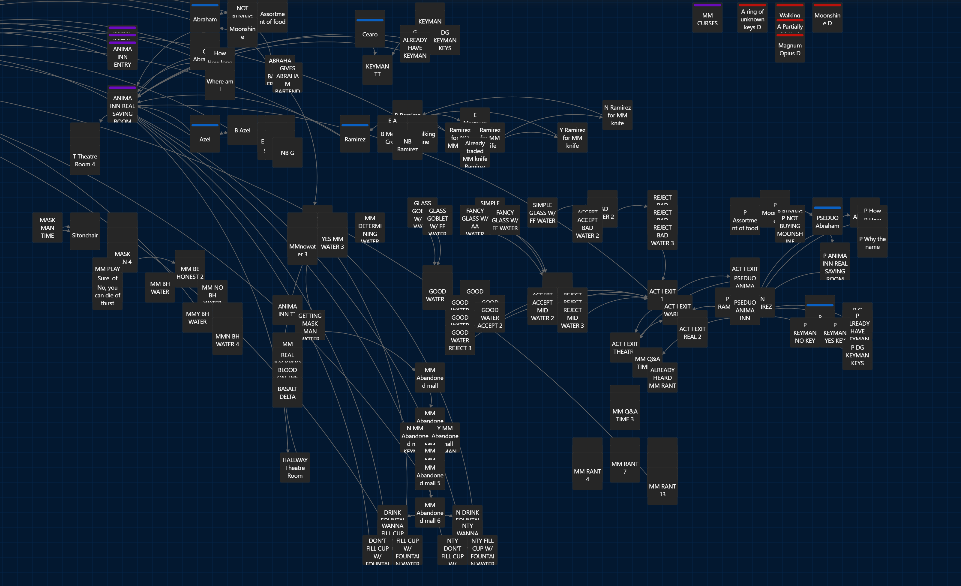 For those of you who are curious, I have included an image of the ACT I timeline taken straight from my Twine code.