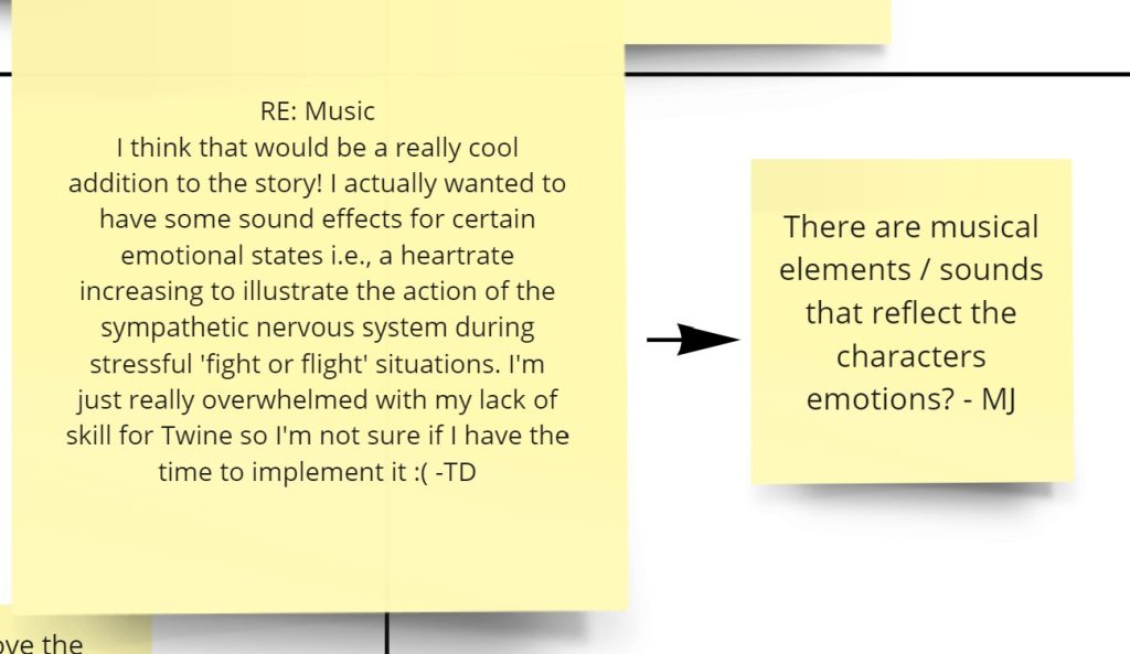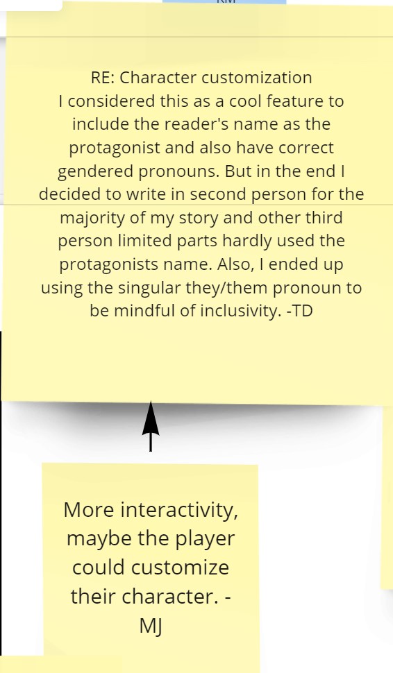 I wanted to also take the time to respond to some of the suggestions and ‘What if’ considerations that was left on the Miro board. I appreciate all the ideas and I really wish I had more time to implement all of them before the deadline. Here a few of my replies to the comments: