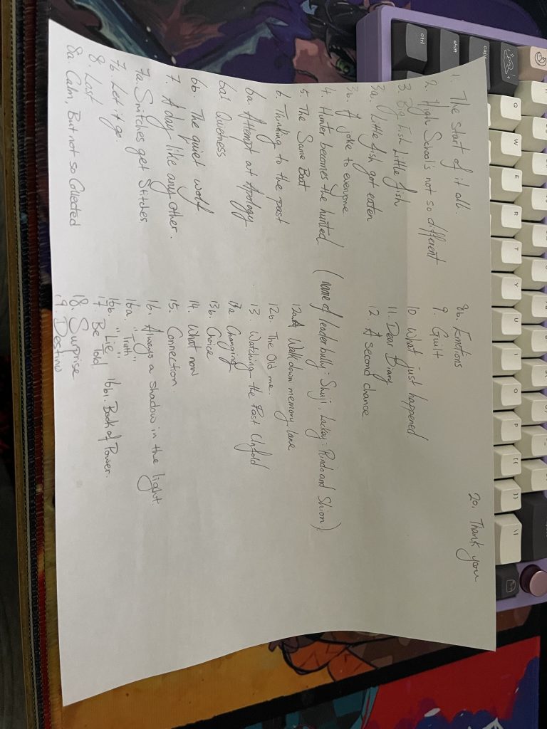 I chose to pay homage to the anime Tokyo revengers as I ultimately gave names to everyone in the story, as the story is about high school students that eventually became violent gang members.