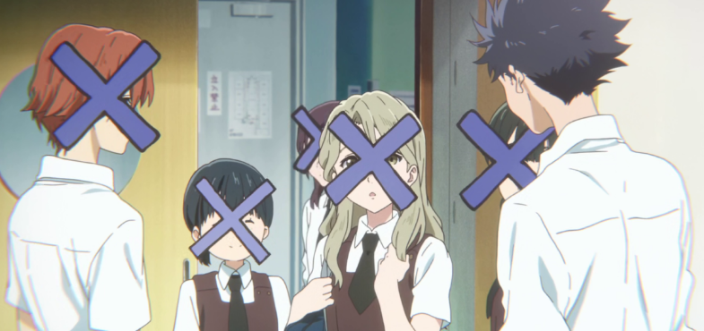 There is a bit of inspiration to this because in “A Silent Voice” The main character used to see X’s on everyone’s face, and the X’s slowly started falling off as he started to accept himself, and others around him.
