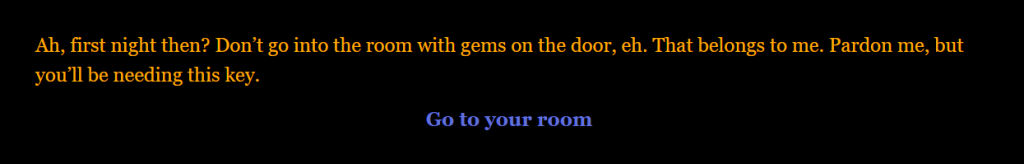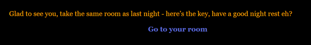 However, what you don’t see in this screen is the fact that it sets $roomkaleem to 1, which is basically means that you have asked her for a room at least once. Now, if you were to ask Kaleem for a room again (ie. you want to save again). she will say this: