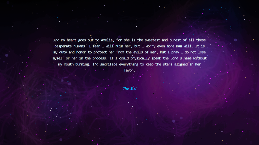 I THINK IT IS DONE? Every time I play it I find random brackets/periods so to avoid that I’ll just not play it. Audio is “working” and got the title and credits done. I have a hard time stopping and calling it quits on a project but honestly I’m not even working on it anymore I’m just mucking around. May as well bite the bullet and post it. Here will be the final breakdown of what it all looks like before making a post of it finished.